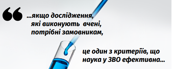 – Я працюю в науковій сфері достатньо давно. Працював у науково-дослідній частині Сумського державного університету, ми допомагали вченим знаходити фінансування, гранти, замовлення від бізнесу. Переконаний: якщо дослідження, які виконують вчені, потрібні замовникам, це один з критеріїв, що наука у ЗВО якісна.