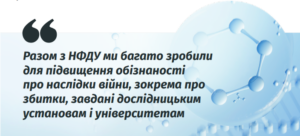 Разом з НФДУ ми багато зробили для підвищення обізнаності про наслідки війни, зокрема про збитки, завдані дослідницьким установам і університетам.