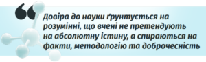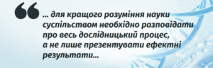 Наука не повинна обмежуватися лише презентацією досягнень, потрібно пояснювати, як ці досягнення здобуваються. До речі, говорити треба не тільки про успіх, а й про невдачі. Довіра до науки ґрунтується на розумінні, що вчені не претендують на абсолютну істину, а спираються на факти, методологію та доброчесність. У цьому й полягає складність наукової комунікації. Це та «сіра зона», де вченим доводиться пояснювати, що наука – це не про остаточну певність, а про метод і доброчесність.