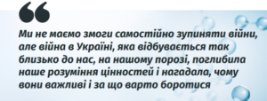 Ми не маємо змоги самостійно зупиняти війни, але війна в Україні, яка відбувається так близько до нас, на нашому порозі, поглибила наше розуміння цінностей і нагадала, чому вони такі важливі і за що варто боротися.