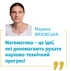 Ми переконані, що наукові успіхи неможливі без успіхів освітніх. Саме вчителі запалюють учнів бажанням досягати вершин і підказують шлях, як це зробити. Розповісти про Марину Вязовську ми попросили декана механіко-математичного факультету КНУ імені Тараса Шевченка, професорку Оксану Безущак.