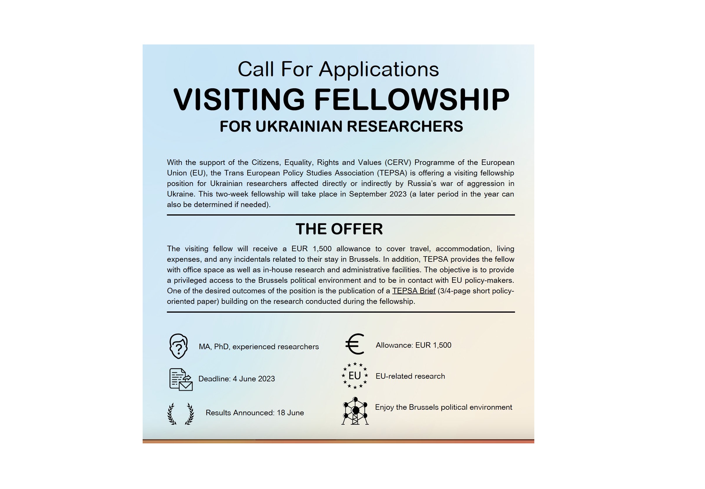 With the support of the Citizens, Equality, Rights and Values (CERV) Programme of the EU, TEPSA is offering a visiting fellowship position for Ukrainian...