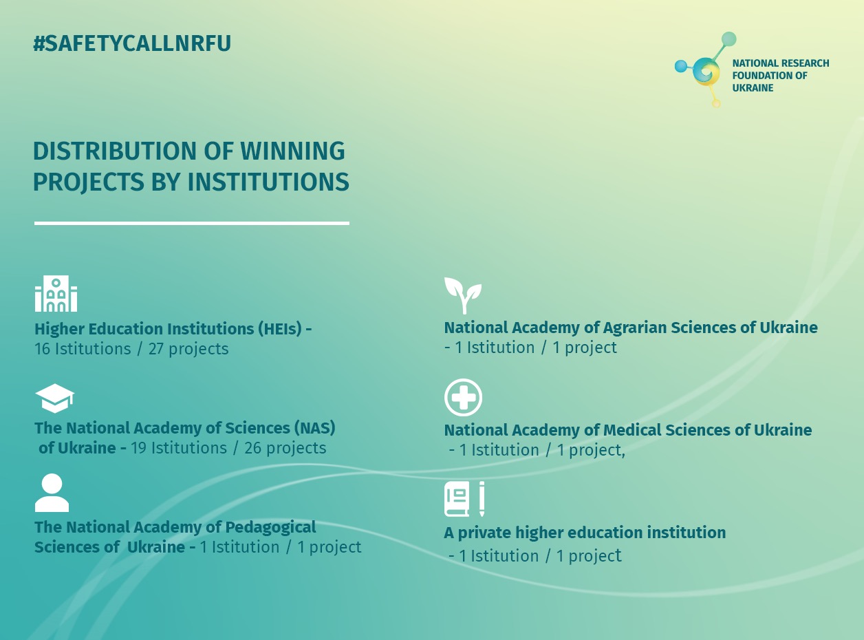 Statistics of distribution of winning projects by institutions of the call “Science for Safety and Sustainable Development of Ukraine”