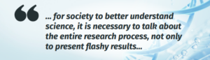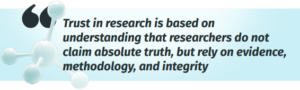 Research should not be limited to presenting achievements; it should explain how those achievements are reached. Moreover, it is necessary to talk not only about success but also about failure. Trust in research is based on understanding that researchers do not claim absolute truth, but rely on evidence, methodology, and integrity. This is what makes science communication difficult. This is the ‘grey area’ where researchers must explain that research is not about certainty, but about method and integrity.