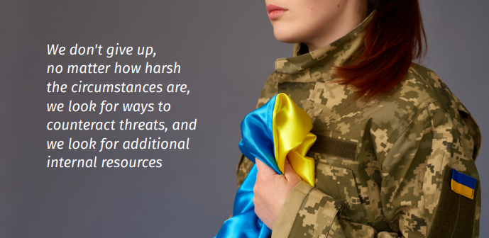 The war is terrible, but at the same time it gives every woman the opportunity to test her strength. To realize that she is capable of more, to believe in herself and to participate in decision-making. This experience is very important and will definitely be useful for the whole society during the post-war recovery.