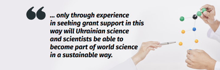 It was only in 2019 that Ukraine was able to establish the National Research Foundation of Ukraine which launches calls and funds the winning projects. The creation of the NRFU was an extremely important moment of reform in Ukrainian science, but unfortunately it was interrupted by the russian invasion of Ukraine on February 24, 2022. It is remarkable that the NRFU has managed, in the wartime, to build international partnerships with European and North American research foundations. This is the great merit of the Foundation’s managers.