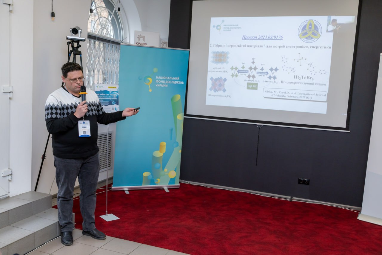 Михайло СЛИВКА, професор кафедри органічної хімії Ужгородського національного університету розповів про шляхи створення та перспективи гібридних матеріалів. Його команда створила цінні матеріали з прогнозованими властивостями для потреб медицини й енергетики (проєкт «Стратегія спрямованого синтезу функціональних халькогенгалогенідних матеріалів для потреб медицини й енергетики», конкурс «Передова наука в Україні»).
