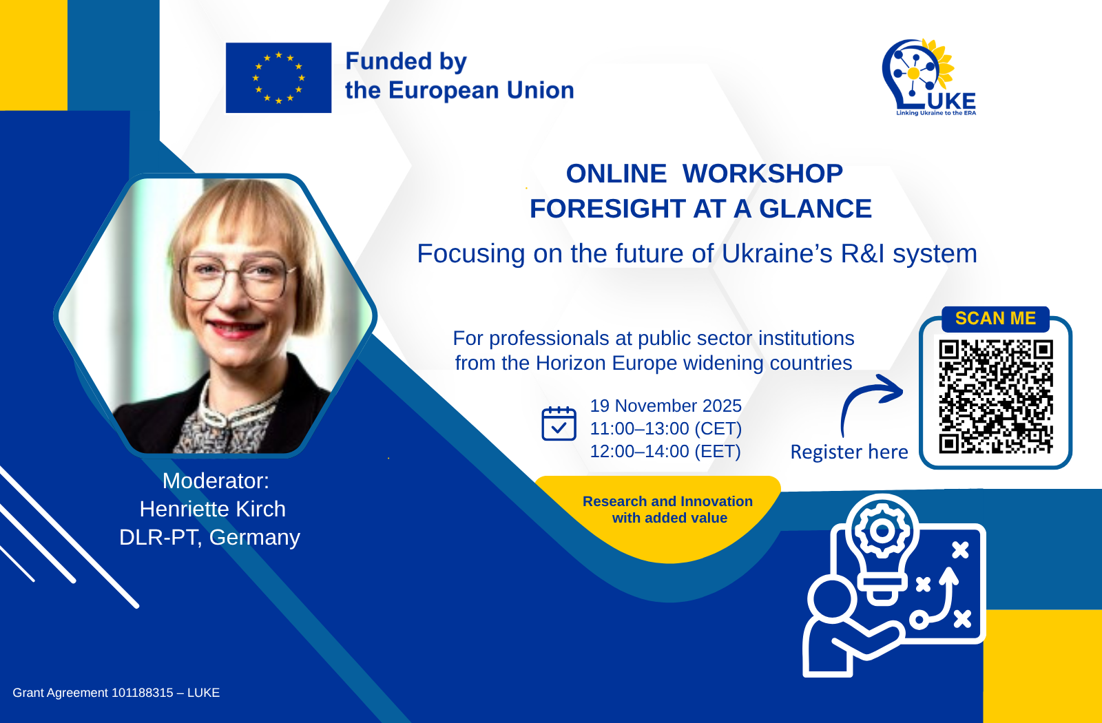 Час проведення – 11:00-12:00 за київським часом. Під час цієї інформаційної сесії представники NWO та НФДУ зроблять коротку презентацію про ініціативу. У вас також буде можливість поставити запитання. Участь в інформаційній сесії передбачає обов’язкову реєстрацію за посиланням;