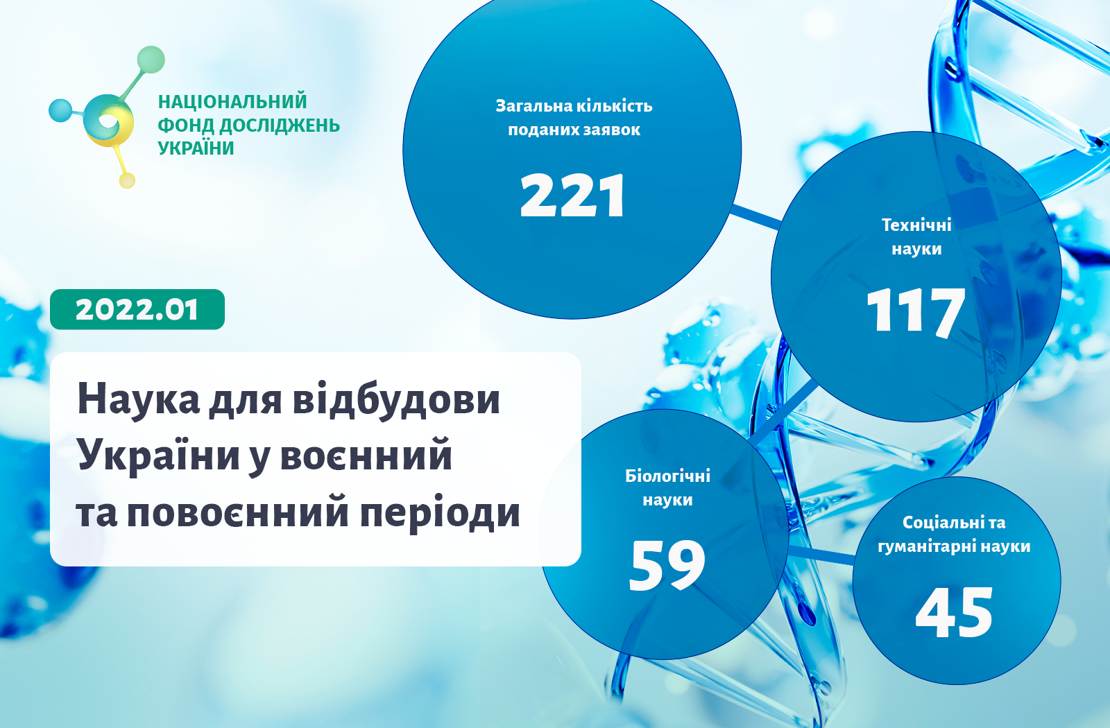 31 січня 2023 року було завершено прийом заявок за конкурсом 2022.01 «Наука для відбудови України у воєнний та повоєнний періоди».