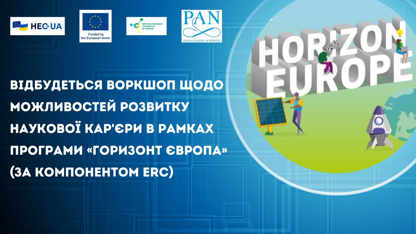 Відбудеться воркшоп щодо можливостей розвитку наукової кар’єри в рамках Програми «Горизонт Європа» (за компонентом ERC)