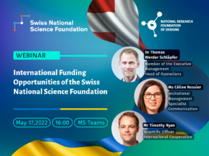 Нагадуємо, що вебінар «Можливості міжнародного фінансування Швейцарського національного наукового фонду» («International Funding Opportunities of the Swiss National Science Foundation») відбудеться вже сьогодні!